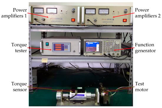 In order to study the influence of high overload on the performance of TRUM, the mechanical performance test of the four TRUMs before and after high impact are carried out. Figure 14 shows the experimental setups. The driving voltage is generated by a function generator (AFG 3022B; Tektronix Inc., Beaverton, AL, USA) and amplified to 400 Vp-p by two power amplifiers (HFVA-153; Foneng Technology Co., Ltd., Nanjing, China). The end of the test motor shaft is connected to a torque sensor (CYT-303; Tianyu Sensor Co., Ltd., Beijing, China), through which speed and output torque of the motor are measured. The results are finally displayed on the monitor of the data collector.