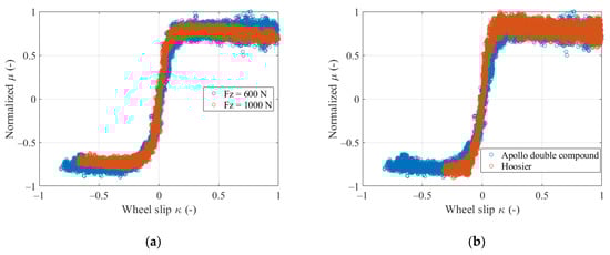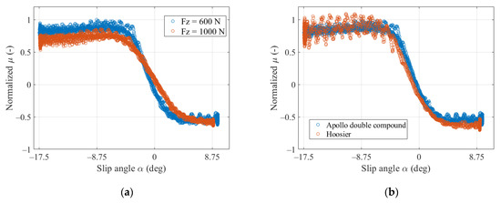 Table 2. Since the Kelly and Sharp model considers the contact patch area depending on the normal load and air pressure, the model can adapt to different normal loads and the maximum error is limited to ~6%. Therefore, the models were also checked using measurement data for different load conditions. It was found that although the Sorniotti model has a good fit to the measured data, the error increases when the load condition is changed (
