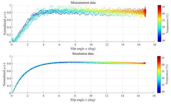 h are identified from measurement data. The simulation and experimental results for the obtained normalized lateral friction coefficient are shown in
