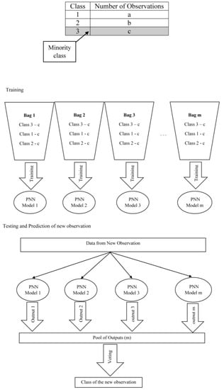 Findings described above highlight the necessity of an appropriate technique to handle class imbalanced problem in data sets. A technique called multi-class undersampling based bagging (MCUB) is proposed to handle the multi-class imbalanced problem persisting in data sets considered in the study. Both standard PNN and proposed PNN were embedded into the proposed MCUB technique separately for further investigations.