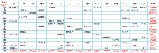 The final result is the overall stress spectrum, which is thus the mere summation of the individual, non-interacting, stress spectra pertaining to each combined stress history and to each individual stress history.