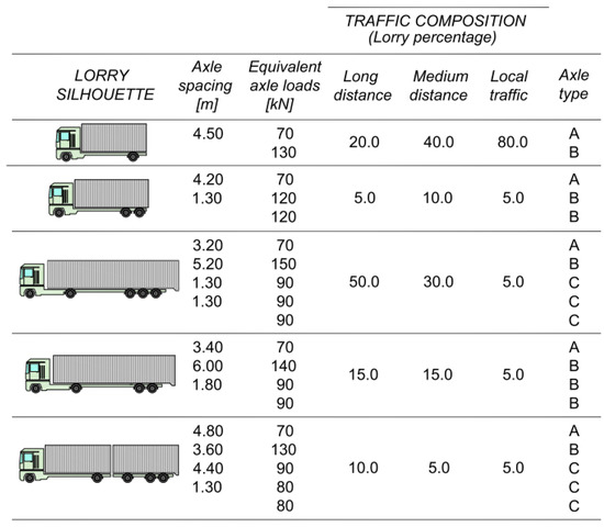 Obviously, even here the emphasis is on fatigue assessment and therefore on heavier vehicles, the proposed approach can be used in a much more general context. In reality, in terms of traffic composition, three different options can be envisaged for its practical applications: