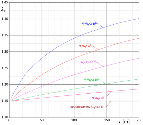 4.3. Influence of the Reference Length L and of the Traffic Flow N on Simultaneity Effects on Several Lanes