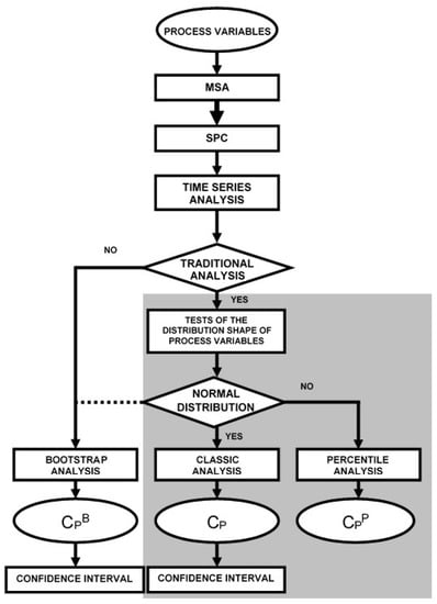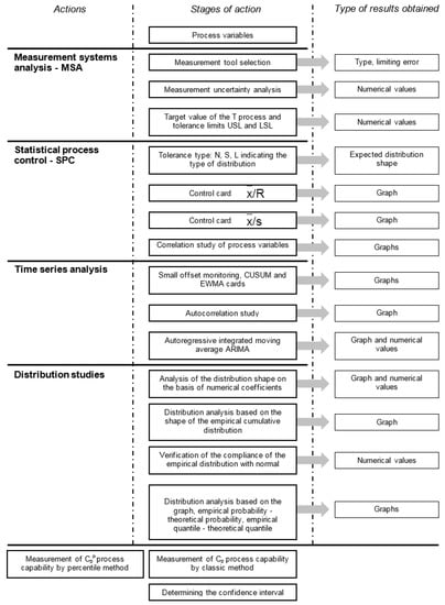 The detailed scope of research for individual activities is presented in Figure 5. Due to the large number of results (especially charts), the results are presented only for the final stage of the procedure, i.e., the assessment of the process capability CP.