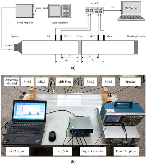 - Qu, B.; Zhu, B. Four-microphone Method of Sound Transmission in the Standing Wave Tube. Noise Vib. Control 2002, 22, 44–46. [Google Scholar]