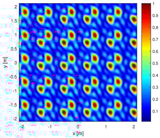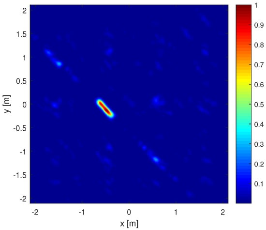 It is worth noting that the choice of a multiplication based fusion strategy, of course is not the only way to merge the different reconstructions. Indeed, the optimization of this point is beyond the scope of the presented paper as the focus is on the possibility of exploiting non-coherent reconstructions to mitigate spatial under-sampling. Moreover, it must be pointed out that even though the proposed multiplicative procedure can impact positively on the achievable resolution and the side-lobe level, the result in Equation (22) is, in general, no longer clearly linked to the targets’ shapes. In this regard, Equation (22) must be considered more as an indicator function which highlights the presence of targets. This is, however, sufficient for detection, with the latter being the main aim of this contribution.