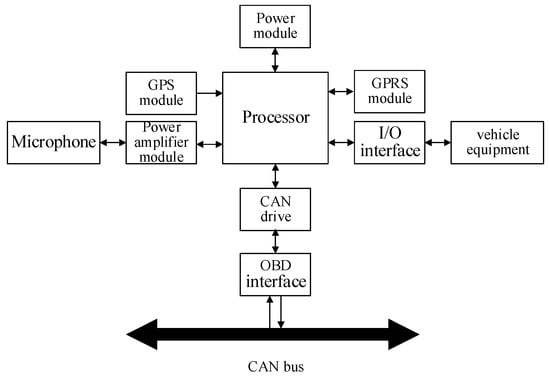 The whole frame of the novel time-sharing rental vehicle terminal for electric vehicle based on acoustic communication technology is shown in Figure 3, which includes power module, processor, GPS module, GPRS module, double microphone, power amplifier module, input/output (I/O) interface, controller area network (CAN) driver and on-board diagnostics (OBD) interface, and so on. When the instruction is sent by the platform or the mobile phone directly sends out the instruction, the processor analyzes the relevant instruction and transmits the signal to the related device in the vehicle through the I/O interface and wire to realize the remote control of vehicle equipment. The function of monitoring of vehicle status is achieved by obtaining vehicle operating status data provided by the OBD interface under the CAN driving.