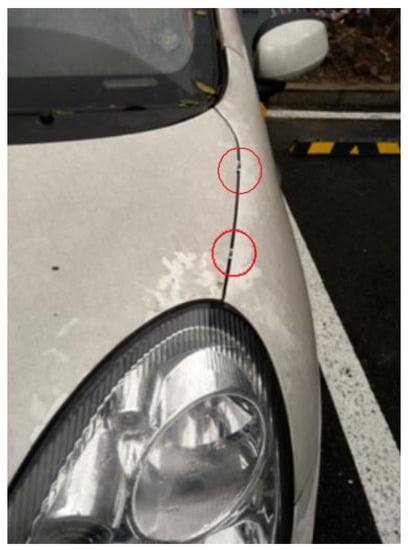 The novel developed vehicle terminal was installed on the test vehicle, and the microphone was installed under the hood, so as to have a water resistance as long as it did not affect the normal receiving ability as shown in Figure 8.