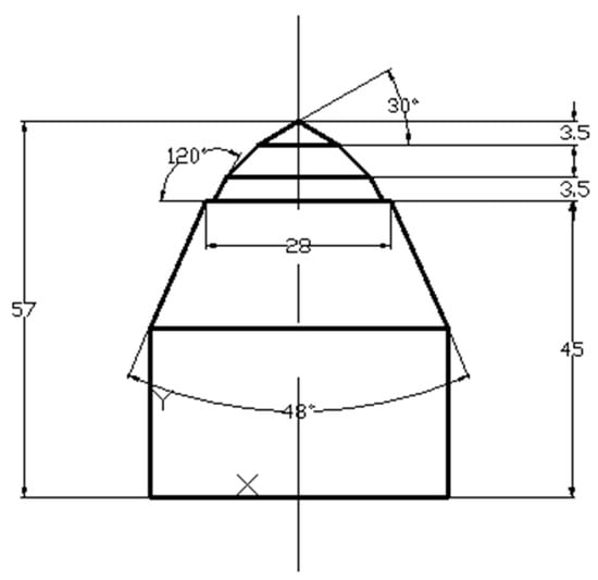 The geometrical parameters of the practical conical pick used in our experiment are given in Figure 5. The material parameters in the experiment used are: E = 650,000   MPa and υ = 0.3 . At the same time, the normal force of F z = 5.5   kN , the cutting force of F y = 0.6   kN , and the lateral force of F x = 0.002   kN are imposed on the top surface of the conical pick, and the force area is three-quarters of the top area shown in Figure 6. First, the numbers and area of the forced elements are obtained based on the ES-FEM mesh; and then the forces of one element are imposed on three nodes through the face normal algorithm. Besides, we fully fix the bottom of the conical pick.