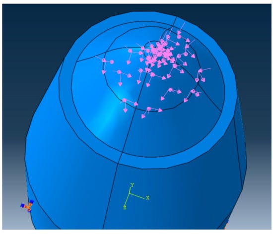 In recent years, engineers and researchers have done large quantities of analysis on the forces imposed on a rock-cutting pick via simulations to study the wear of picks in the process of rock cutting. In numerical simulations, several computational methods have been widely used as efficient simulation tools to analyze the mechanical performance of picks and critical failure modes of rock fracture [13,14,15], like the finite element method (FEM), meshless methods, and so on. Du Xin and Ying Ming analyzed the effect of cutting pick stress with different cutting linear velocities using Pro/E (Pro/Engineer software) and the ANSYS (ANSYS is a large general finite element analysis software developed by ANSYS corporation) finite element method [16], in which the model was created and the loads were applied at the top of the cutting pick. Yan Pengfei studied the stress characteristics and failure mechanism of the cuttings under normal working condition, brazing loose condition, and tooth wear condition using ABAQUS which is a finite element analysis software [17,18]. In his study, the loads were applied on the conical surface, which was 4 mm away from the tip.