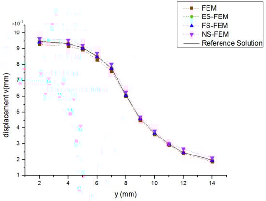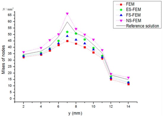 Table 6 shows the comparison of displacements of ES-FEM with FEM, NS-FEM, and FS-FEM. Figure 15 is plotted by the distance from the tip of the conical pick on the horizontal axis and the node’s displacement on the vertical. The comparison is fair and rigorous as long as the same distribution of nodes is used. Overall, the displacements of ES-FEM are closer to the reference solutions than those of FEM. This also verifies that, regardless of strain and displacement, ES-FEM is the most accurate and stable method compared with FEM and other S-FEMs.