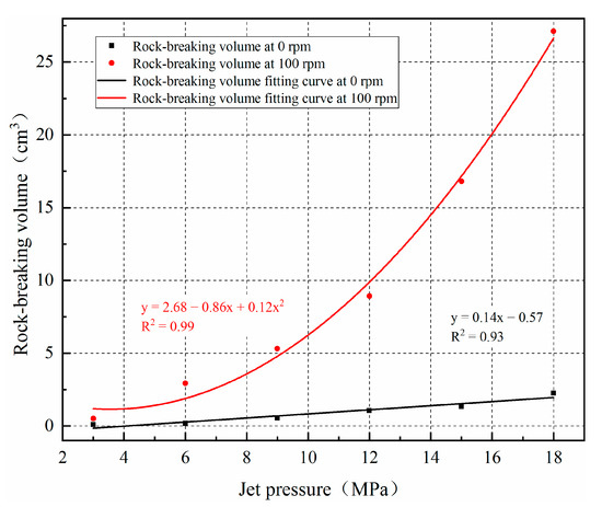 - The volume of crushed pit by rotary jet erosion increases as the jet pressure increases. The erosion from a rotating bit increases quadratically with pump pressure but the increase is consistent with the results from fixed jet erosion. The depth to which the rock is broken is the dominant factor that defines the volume of broken rock; the diameter or the area broken is of secondary importance.