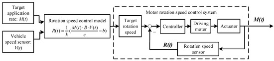 Zhang et al. proposed a variable rate fertilizing technology. This control system was based on a single-chip microcomputer. The input was the forward speed of the machine and the target application rate of the prescription chart. The output was the rotation speed of the fertilizing and seeding driving shaft, which determined the actual application rate [4]. The motor is generally divided into three types: the stepper motor [5], DC(Direct-current) motor [6], and hydraulic motor [7]. According to their respective control principles, the speed control can be realized. These typical methods of controlling the application rate are, essentially, open-looped control methods. Their common characteristic is to depend on the relationship model between the mass flow rate of fertilizing or seeding and the rotation speed of the driving shaft to the control. Based on this relationship model, real-time control of the driving shaft rotation speed can be performed to control the application rate when the target application rate and vehicle speed are given [8]. This kind of open-looped control structure is simple and economic. The disadvantages are that it cannot eliminate the error caused by interference and the control accuracy easily decreases once the relationship model parameters change because of the change of working conditions. The closed-looped control structure can effectively suppress this interference and improve the response performance of the control system [9].