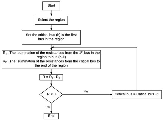 Figure 3 represents the flowchart for the proposed algorithm which is used for finding the critical bus when the DG is installed at each bus; also the equations that are used to determine the ratio of power supplied from the DG and substation to the critical bus are presented and derived in the following paragraphs.