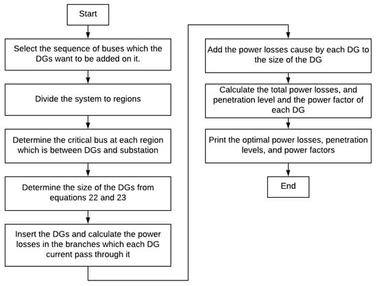 Figure 6 represents a flow chart which can be followed to determine the optimal penetration levels and optimal power factors for desired DG locations. After assessing these values for each sequence, the optimal location that minimizes the total power losses in the network can be evaluated.