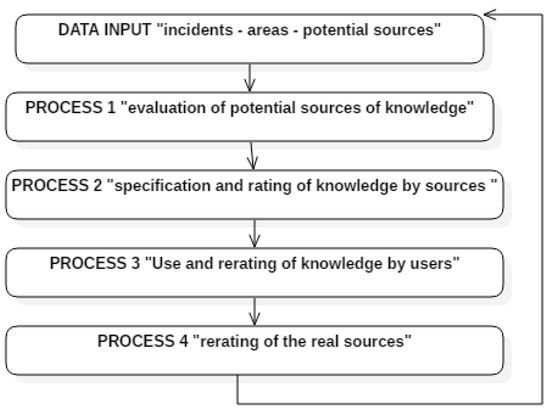 - Tacit knowledge captured from the source. This knowledge is rated by its first user, the real source, and by each of the later users when used in incident resolution. Any differences between the two ratings generate rerating processes of the real source. The source and knowledge rating and rerating criteria are the result of the surveys conducted on knowledge management experts and the results of other research.