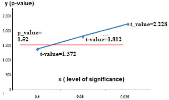 - There is evidence to reject H0 as the statistical value is less than the possible t-value at a significance level of 0.10. There is no evidence to reject H0 at the 0.05 significance level (Figure 17).
