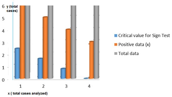 - Applying the Mann–Whitney test, the p-value increases as the number of cases decreases. This means that, in this case, up to 7 cases have to be taken into account to gather evidence to reject H0 (Table 9).
