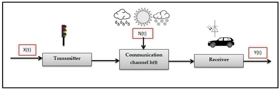 In the meantime, the light-emitting diodes (LEDs) that have been widely deployed in traffic lights can be used as VLC transmitters because they are a possible energy-saving light source, with long life, small size, and low power consumption. Therefore, LEDs are used on different occasions, such as for traffic lights and street lighting that can be used for communication, so that large-scale power can be employed effectively and that could not be used for radio or infrared contact [4,5,6].