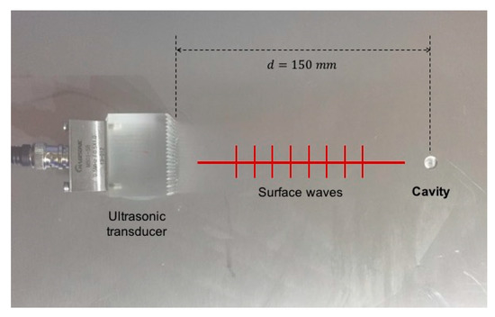 toward the cavity. It was then used as a receiver to record the echoes of the scattered surface waves. The distance from the transmitter to the defect was chosen as