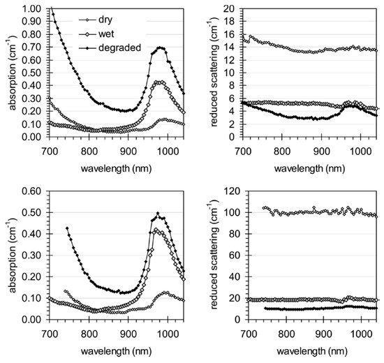 - Konugolu Venkata Sekar, S.; Bargigia, I.; Mora, A.D.; Taroni, P.; Ruggeri, A.; Tosi, A.; Pifferi, A.; Farina, A. Diffuse optical characterization of collagen absorption from 500 to 1700 nm. J. Biomed. Opt. 2017, 22, 15006. [Google Scholar] [CrossRef] [PubMed]