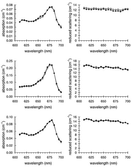 - Chauchard, F.; Roger, J.M.; Bellon-Maurel, V.; Abrahamsson, C.; Andersson-Engels, S.; Svanberg, S. MADSTRESS: A linear approach for evaluating scattering and absorption coefficients of samples measured using time-resolved spectroscopy in reflection. Appl. Spectrosc. 2005, 59, 1229–1235. [Google Scholar] [CrossRef]