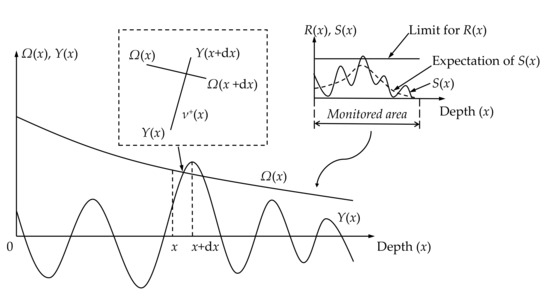 A similar form of Equation (12) (with the terms X and x denoting time) has been extensively used for the estimate of structural time-dependent reliability [31,32,44,45,46]. In this paper, Equation (12) is adopted with modifications to assess the deformation reliability of retaining structures.