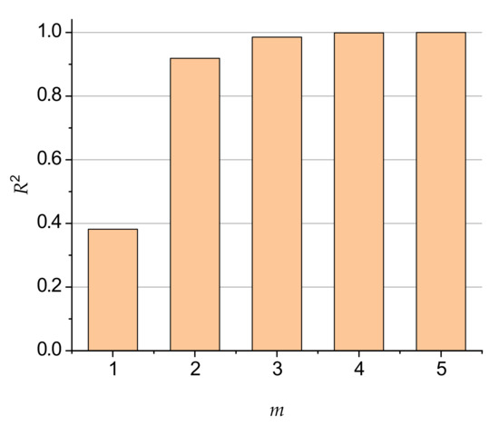where is the coefficient of the polynomial. In order to avoid Runge’s phenomenon in the fitting [48] (the oscillation at the edge of the interval when using a high-order polynomial interpolation), the degree m should be carefully selected. Furthermore, one can obtain according to Equation (4), and further by differentiating .