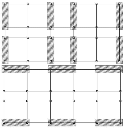 The practical application of retrofitting is always on an actual 3D structure. This section will provide a way to extend the 2D results to 3D structures, which will significantly reduce the computational cost in the optimum retrofitting procedure. The 3D frame shown in Figure 1 is with 3-bay in X direction and 5-bay in Y direction. The dampers will only be installed at a few places in a 3D structure in order to minimally disturb the structural functions. Figure 10 shows the bays at which viscous dampers are placed in X direction and Y direction.
