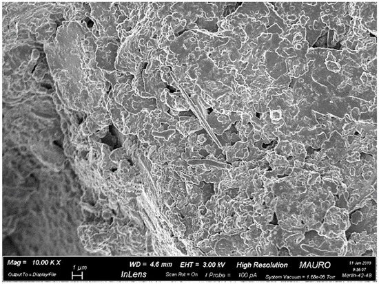 Images of the soil, acquired with scanning electron microscope, are shown in Figure 4, Figure 5 and Figure 6. Figure 4 shows an SEM image of a sample taken from the surface of the aerated column, in which rod-shaped microorganisms are visible (length is 2–6 µm and diameter is 0.5–1µm).
