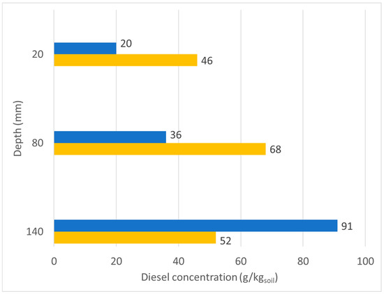 The aerated column was also inoculated with diesel-degrading microorganisms in order to have an initial concentration equal to 1.25 × 103 colony-forming units (CFU) per gram of soil.