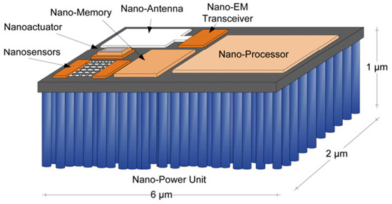 As mentioned, apart from graphene-based THz antennas, graphene is also preferred for the development of other transceiver components in a scale ranging from one to a few hundreds of nanometers, such as: nanoscale FET transistors, nanosensors, nanoactuators, and nanobatteries. With the exploitation of graphene material, the integration of these nano-components in a single device of just a few micrometers in size is feasible, and will result in implementing autonomous nano-devices, able to perform specific tasks at the nanoscale, such as computing, data storing, sensing or actuation [35].