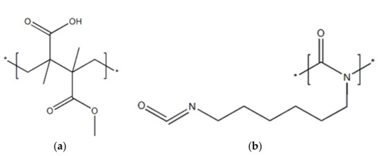Molecular structure of polyacrylate resin and polyisocyanate. (a) polyacrylate resin; (b) polyisocyanate.