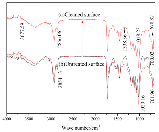 FT-IR spectra of (a) the cleaned surface; (b) the untreated surface.