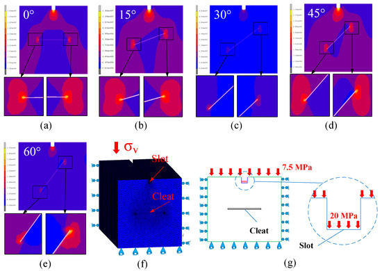 (2) New cracks are not produced during the coal-slotting process. Stress concentration and crack initiation will be caused around the cleat tip in the coal.