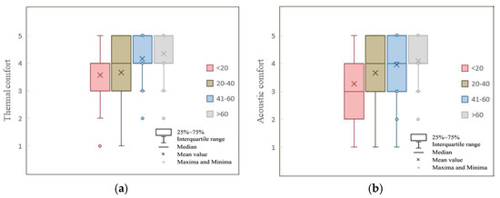The age difference on thermal and acoustic comfort. (a) Thermal, (b) acoustic.