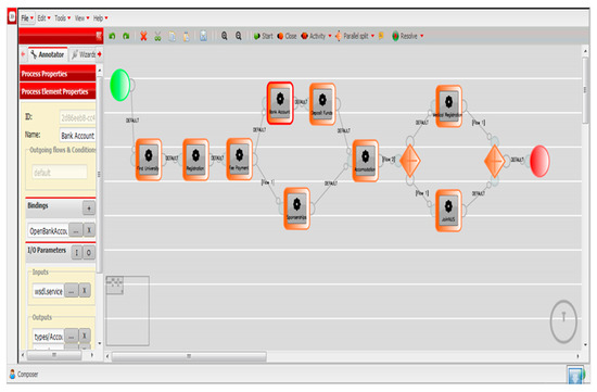 - Martinez, A.; Patino-Martinez, M.; Jimenez-Peris, R.; Perez-Sorrosal, F. ZenFlow: A visual web service composition tool for BPEL4WS. In Proceedings of the 2005 IEEE Symposium on Visual Languages and Human-Centric Computing (VLHCC ’05), Dallas, TX, USA, 20–24 September 2005; pp. 181–188. [Google Scholar]