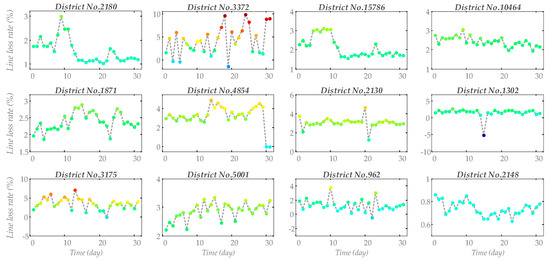 Examples of daily line loss rates in July 2018 from different regions in Wuxi, Jiangsu Province, China.