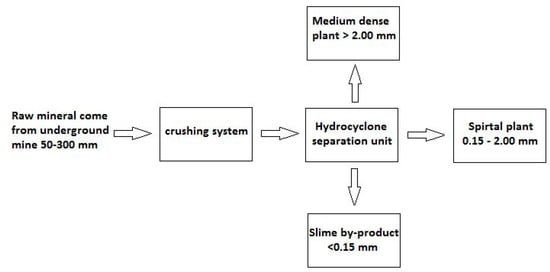 Specifically, the mineral used in the flotation tests is a slime by-product generated in the production plant already installed in this mineral deposit (Figure 1).