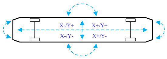 In order to assure the sub robot motion on X-axis and Y-axis are in positive correlation, the moving direction of driving units should be adjusted accordingly. Because the control system energy will not be changed if only directions of driving units are adjusted. In fact, by adjusting driving motors’ direction, the motions on X-axis and Y-axis are able to be changed as ordered. By using the above control strategy, the following errors between master robot and slave robot will be converged, and slave robot is able to keep stable within a certain error range. The control strategy of slave robot is shown in Figure 5.