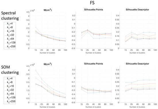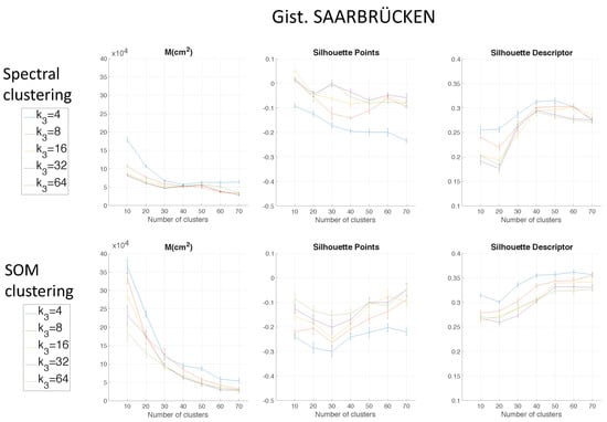 Once the compact map has been produced, it may be interesting to provide some measures that permit quantifying the compactness of the map. In this context, the concept of the silhouette is commonly used. Silhouette values point out the degree of similarity between the instances within the same cluster and at the same time the dissimilarity with the instances that belong to other clusters. The silhouette takes values in the range [], and it provides information about how compact the clusters are. Therefore, in order to quantify the goodness of each method, three parameters are considered: