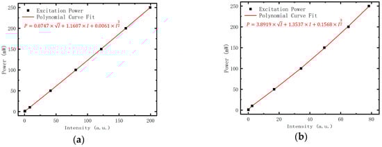 (a) Polynomial curve fit of power dependent photoluminescence (PDPL) results at low temperature (LT); (b) Polynomial curve fit of PDPL results at room temperature (RT). Auger recombination (the third term of the polynomial) should be considered otherwise the coefficient of determination will become worse.