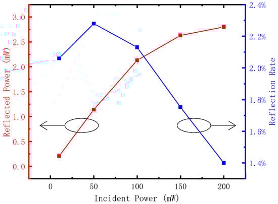 The origins of deviation and the applicable conditions of this method should be discussed. In Equation (2), the coefficient , is regarded as a constant at different excitation power, to which we should pay particular attention. In fact, different excitation power corresponds to different absorption coefficient resulting from band filling effect, bandgap renormalization effect, and other nonlinear interactions. The change of absorption coefficient will affect refractive index due to Kramers–Kronig relations, which influences reflection ratio (shown in Figure 7). As a result, it is better to use as the variable, which we can measure when we change the output power of laser (see Figure 1a).