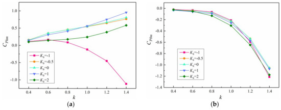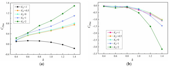The CPhm and CPθm of parallel foils at different Kθ: (a) CPhm curves under different k; (b) CPθm curves under different k.