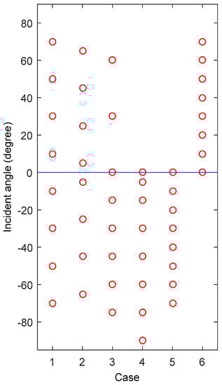 In Figure 9, we further compare two such selections that only cover the negative directions, i.e., case 4 and case 5 in Table 1. The key difference between these two cases is that case 5 ignores the extreme directions from −90° to −70° and hence occupies more directions in −70°to 0° range. This selection is motivated by the observation that at extreme incidence angles, the noise that enters the window are at lower levels than higher incidences. Overall, results in Figure 9 indicate that with the selection in case 5, we can achieve optimal performance for almost all negative directions.
