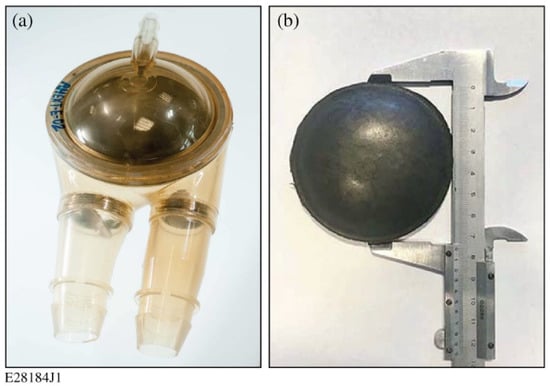 (a) Prototype of extracorporeal heart assist device (reprinted with permission [27], copyright 2018, Elsevier); (b) graphene nanocomposite pneumatic membrane (calipers provided for scale).