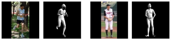 - Lassner, C.; Romero, J.; Kiefel, M.; Bogo, F.; Black, M.J.; Gehler, P.V. Unite the people: Closing the loop between 3D and 2D human representations. In Proceedings of the IEEE Conference on Computer Vision and Pattern Recognition (CVPR), Honolulu, HI, USA, 21–26 July 2017; Volume 2, p. 3. [Google Scholar]