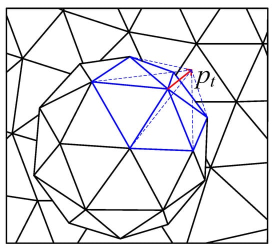 where V denotes the set of coordinates of all vertices, is the volume of the self-intersection region. For the sake of further discussion, a vertex is randomly chosen from the triangular mesh with N vertices. Coordinates of all vertices are frozen, except for . The coordinate of is denoted as .