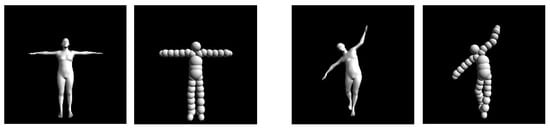 - Loper, M.; Mahmood, N.; Romero, J.; Pons-Moll, G.; Black, M.J. SMPL: A skinned multi-person linear model. ACM Trans. Graph. 2015, 34, 248. [Google Scholar] [CrossRef]