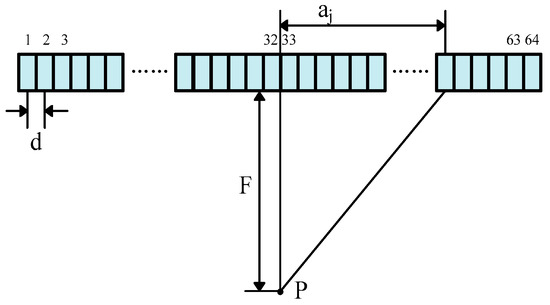 where the distance between array element j and the center axis is aj; the angle between the array element j and the center axis is βj; the focal length is F; the ultrasound velocity is c; the array spacing is d; and the minimum distance between the two adjacent focal points is ΔF [31,32,33].